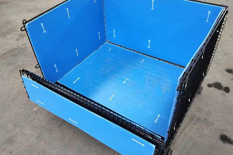中空板仓储笼主要部件分网片制造和底盘制造。