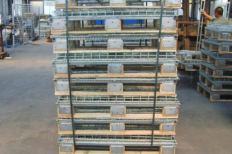 金属仓储笼又叫仓库笼、储物笼,采用强力钢丝焊接而成,底部焊接补强,是仓储运输中很重要的一类物流容器。不同型号、不同规格的折叠式金属仓储笼(仓库笼)可承载重量在0.8T~2.0T之间。该产品坚固耐用、运输便捷、能重复使用,有效降低仓储企业的人力消耗及包装成本。金属仓储笼可广泛运用于各个行业:压铸件、锻造件、汽车配件、摩托车零部件、五金冲压件、工程机械配件、金属制品、管件、齿轮、建筑卫浴零件、灯饰、家具、玩具、邮政物流、医药物流、商超、餐饮、食品、农副产品等。